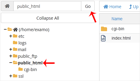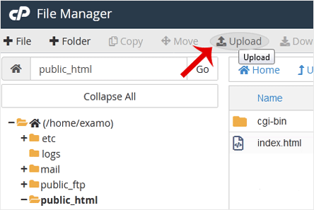 3. In cPanel File Manager, navigate to the directory where you want to upload your files to. For example, should you wish to upload your files to the public HTML directory, you must first go to /public_html