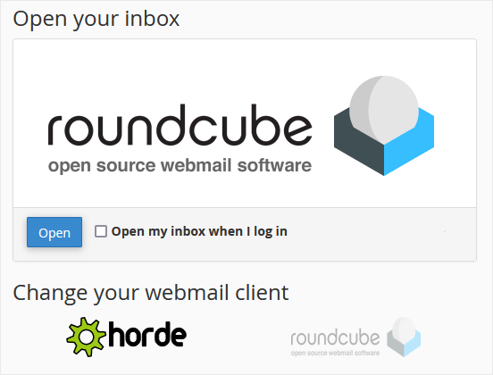 2. From the cPanel's Webmail Page, click on any Webmail email reader such as Horde, Roundcube, or any other available application.