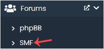 4. On the left side, locate the Forums category. Click on it and then on the SMF link that appears.