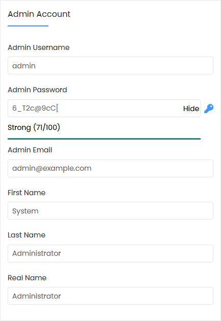 - Admin Username: Your new GRAV username (for security reasons, do not use the administrator or the admin username).